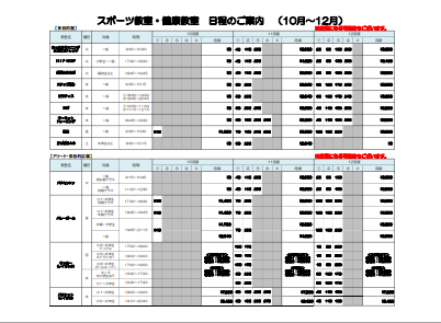 10月~12月 スクールスケジュール