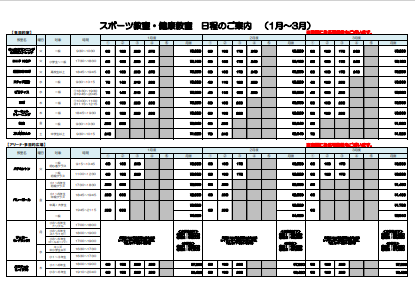 【10月28日更新】1月~3月のスクールのスケジュールのお知らせ