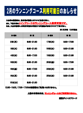 2月のランニングコース利用可能日について